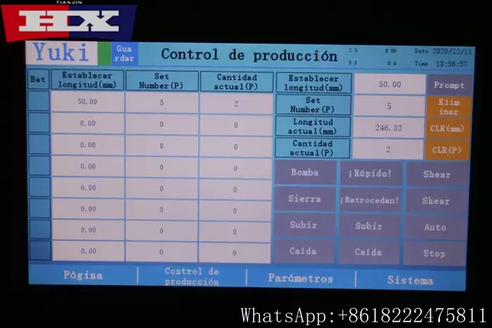 | Sistema de corte | PLC(Marca importada) |